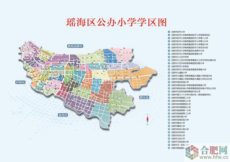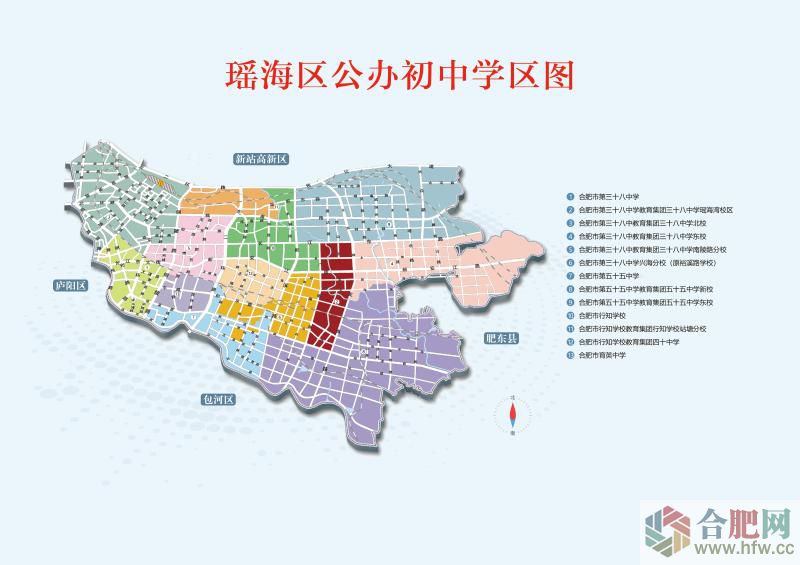 | 8 | 合肥市第五十五中學教育集團五十五中學新校 | 瑤海區與肥東縣交界 | 瑤海區與包河區交界 | 郎溪路(含裕溪路、鐵路線以南的鋼南社區,不含化西生活區) | 裕溪路至龍崗路至龍崗開發區南界 |