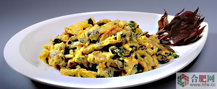 貢椿炒蛋是一道以香椿頭、雞蛋為主材的家常菜肴。香椿葉被稱為“樹上蔬菜”,其嫩芽綠葉紅邊,猶如瑪瑙、翡翠,香味濃郁。該菜是將香椿葉切成碎末,雞蛋倒入打散,翻炒至熟。香椿味混合著蛋香,松軟可口,能起到增加食欲的功效。
