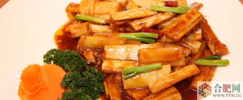 廣德油燜筍尖以當(dāng)?shù)厮a(chǎn)竹筍為原料,切成薄片,并加入豬肉餡炒制微熟,再加入少許水,小火慢燉而成,經(jīng)濟(jì)實(shí)惠,并且竹筍也含有豐富的營養(yǎng)元素。